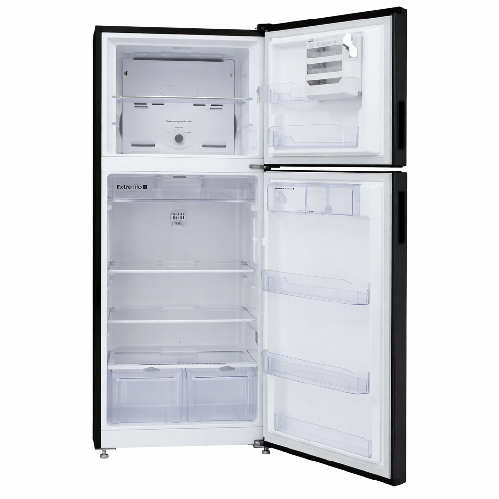 Nevera Haceb No Frost de 404 litros con acabado Inox negro y diseño de manija integrada, que aporta una estética moderna, limpia y elegante al hogar. Su sistema No Frost evita la formación de hielo, optimiza el enfriamiento y garantiza una mejor conservación de los alimentos sin necesidad de descongelar manualmente. Incluye bandejas resistentes, compartimientos organizados y espacios tipo adaptables para maximizar la capacidad interna. Una excelente opción para familias que buscan mayor capacidad, eficiencia y estilo en su cocina.