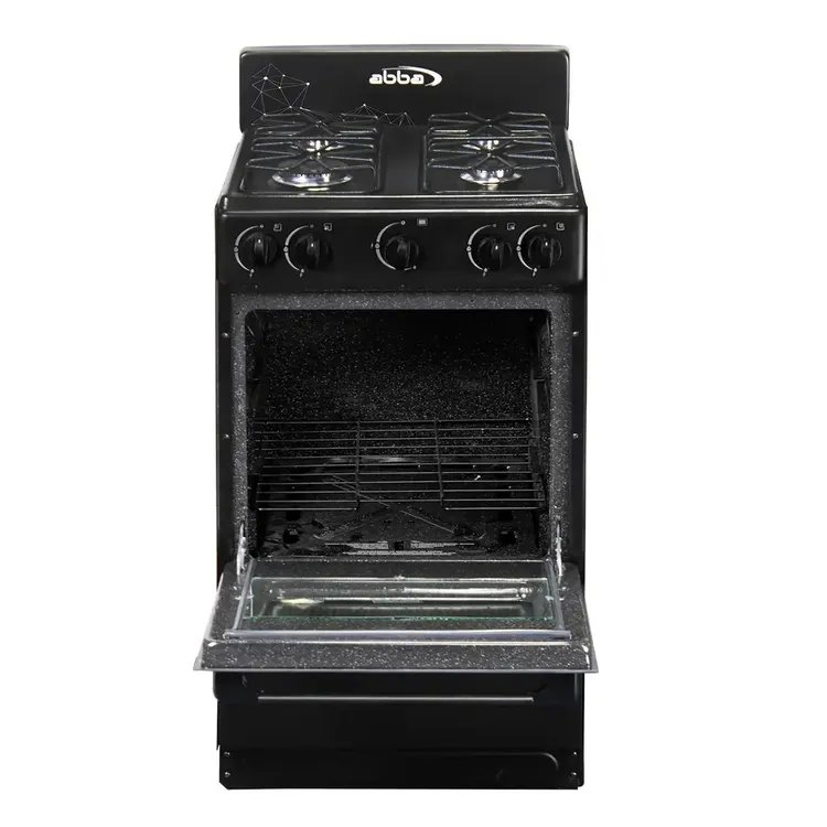 Estufa de piso con cuatros puestos y horno incorporado.