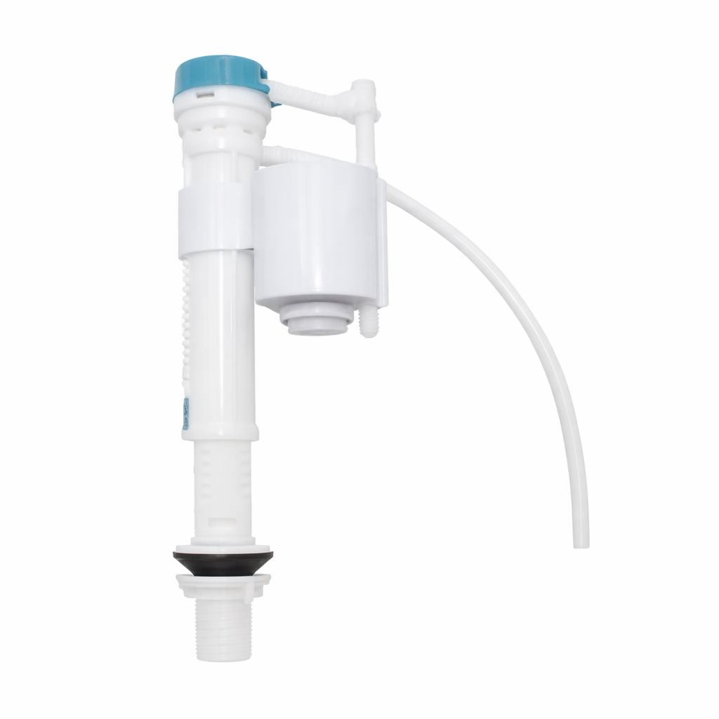 Llave sencilla para lavamanos fabricada en plástico cromado, incluido la palanca de agarre y la manguera de instalación.