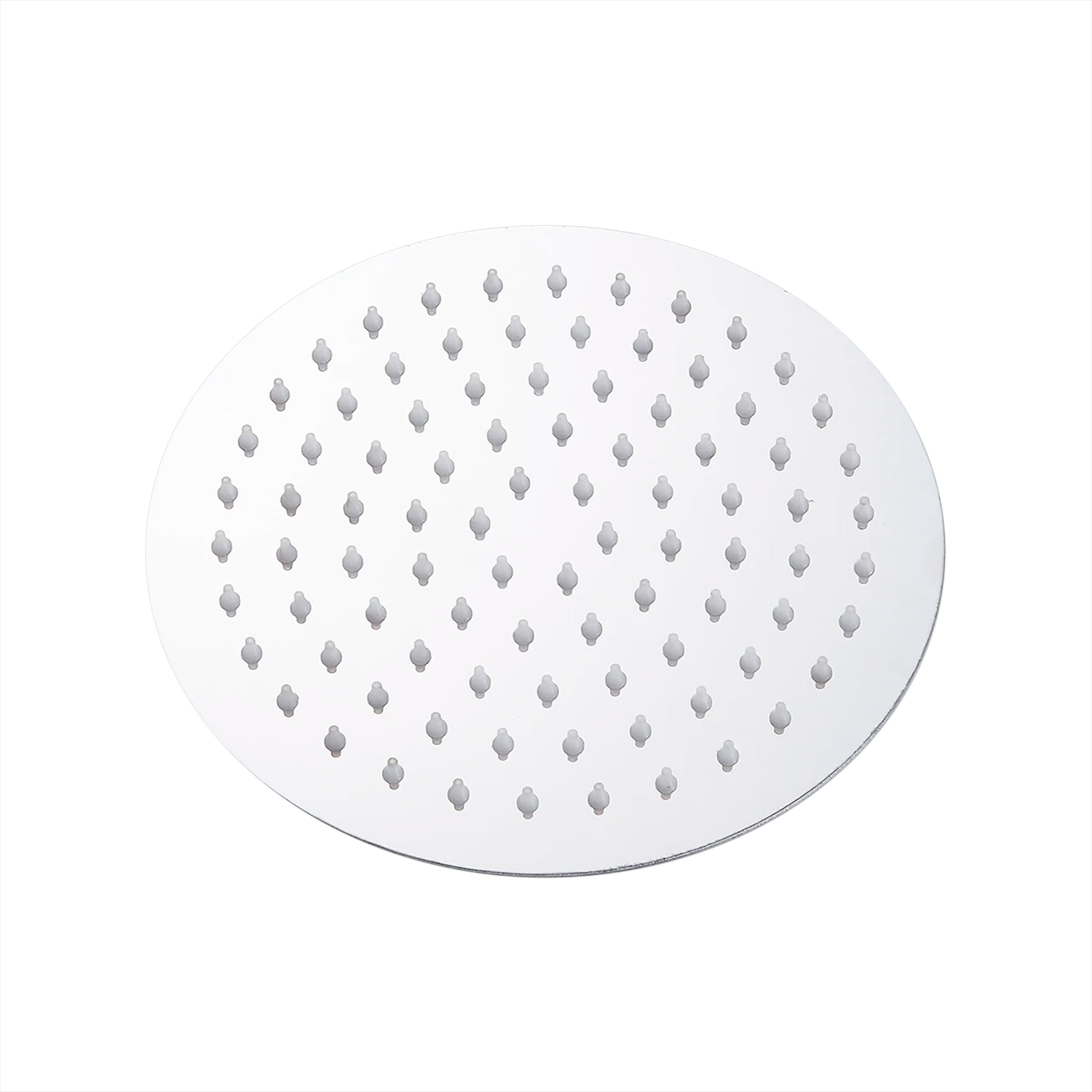 Ducha redonda tipo lluvia fabricada en metal con acabado cromado brillante, ideal para brindar una experiencia de baño cómoda y relajante. Cuenta con múltiples boquillas de silicona que permiten una salida de agua uniforme y ayudan a prevenir la acumulación de sarro, facilitando su limpieza y mantenimiento. Su diseño plano y moderno se adapta fácilmente a diferentes estilos de baño.