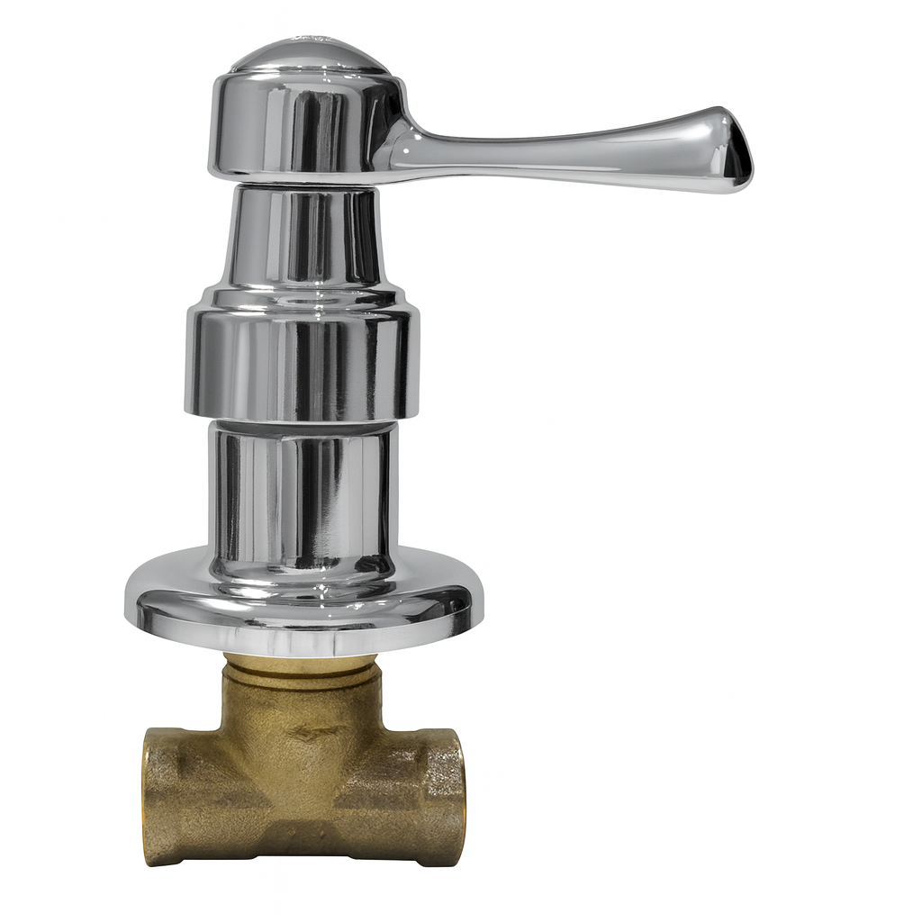 Válvula de registro angular fabricada en bronce de alta resistencia, diseñada para el control y cierre del paso de agua en instalaciones hidráulicas. Cuenta con acabado cromado en la perilla y embellecedor, que brinda una apariencia moderna, mayor durabilidad y resistencia a la corrosión. Su manija metálica de diseño ergonómico permite una apertura y cierre suaves y precisos. Ideal para uso en lavamanos, sanitarios y otros puntos de conexión domésticos o comerciales.