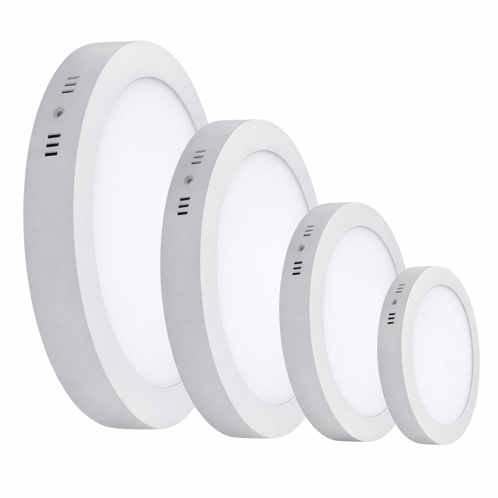 Panel LED circular de sobreponer, diseñado para brindar iluminación eficiente, uniforme y de bajo consumo en espacios interiores. Cuenta con un cuerpo delgado y resistente, acabado en color blanco, y un difusor opal que distribuye la luz de manera homogénea, reduciendo sombras y deslumbramientos.