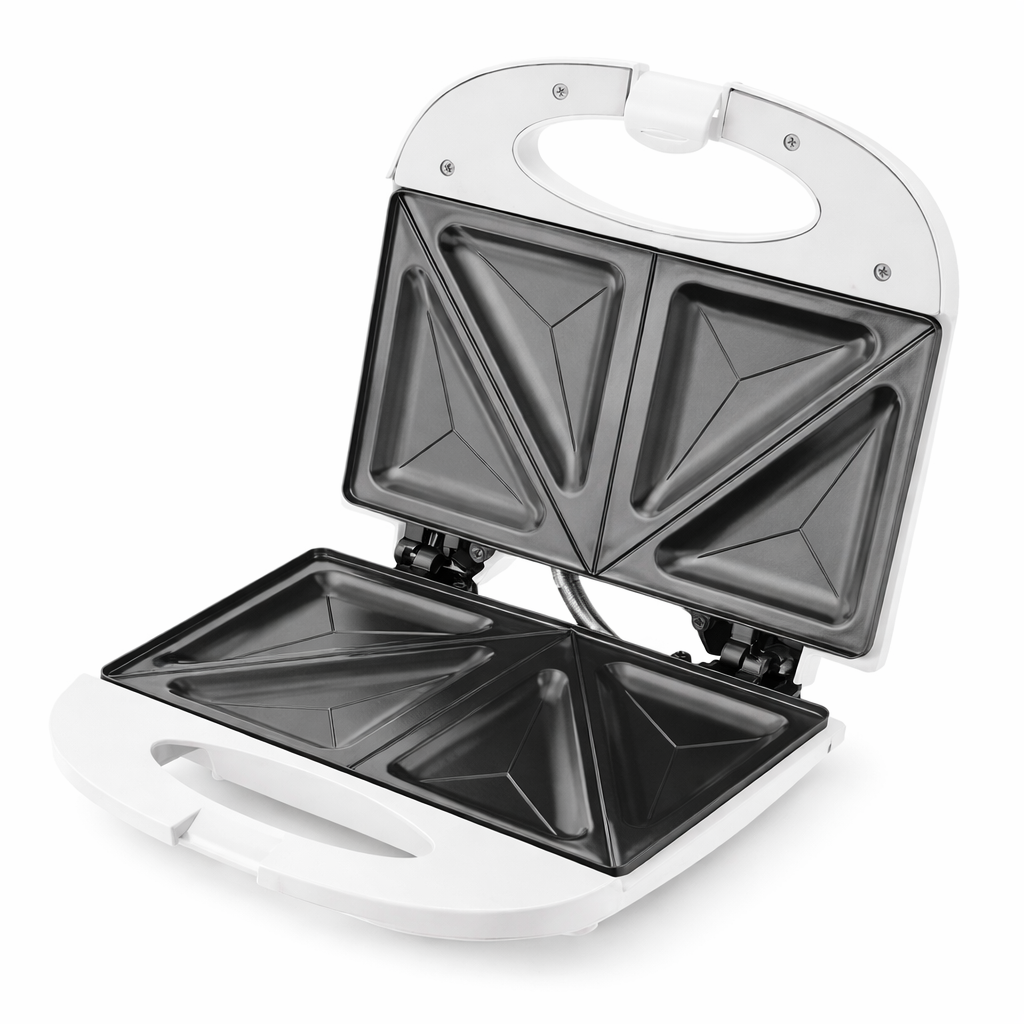 Práctica y funcional sanduchera eléctrica ideal para preparar deliciosos sándwiches en minutos. Cuenta con placas internas antiadherentes con diseño triangular, que sellan y doran el pan de forma uniforme, evitando que los alimentos se peguen y facilitando la limpieza. Su diseño compacto y liviano la hace perfecta para el hogar, oficinas o espacios pequeños. Incluye asa con cierre de seguridad para un uso cómodo y seguro, además de una estructura resistente al calor.