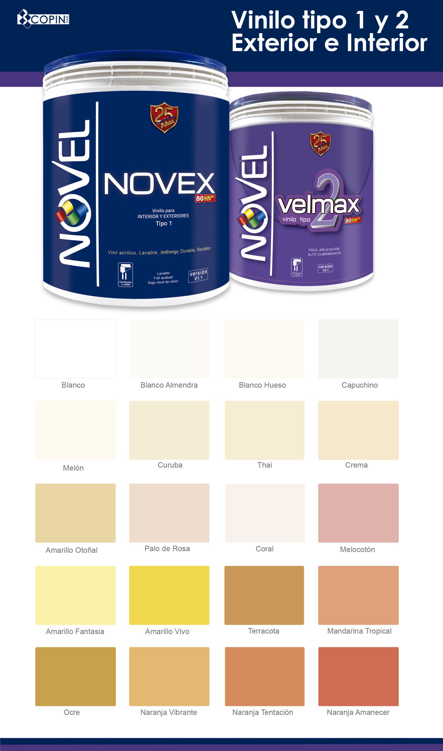 El Vinilo Novex Galón T1 es una pintura vinílica base agua para interiores, diseñada para ofrecer un acabado uniforme, suave y decorativo. Su formulación proporciona buen cubrimiento, adherencia y facilidad de aplicación, permitiendo obtener paredes con aspecto limpio y estético en poco tiempo.