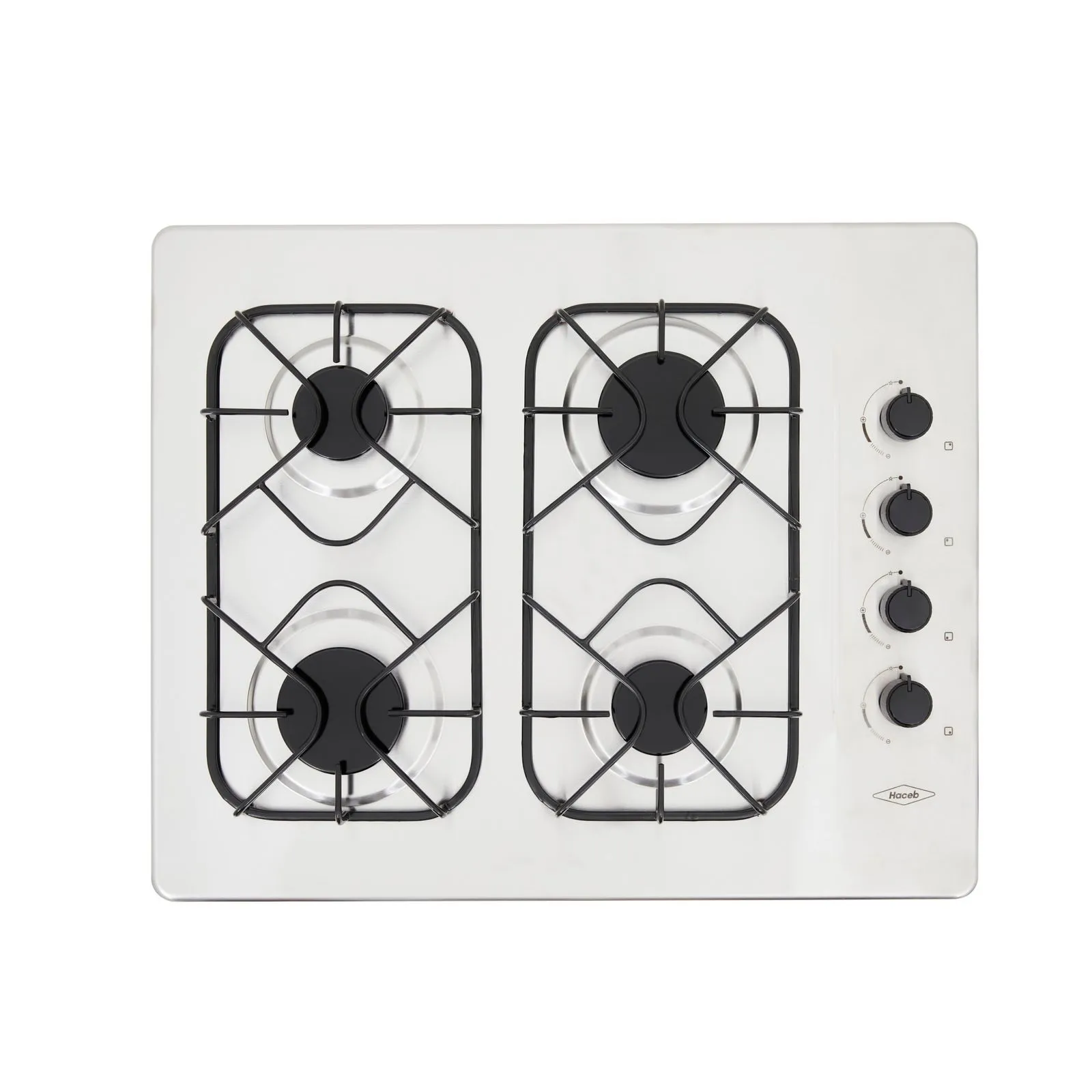 Cubierta en acero inoxidable con diseño de empotrar, de cuatro puestos y funciona a gas natural.