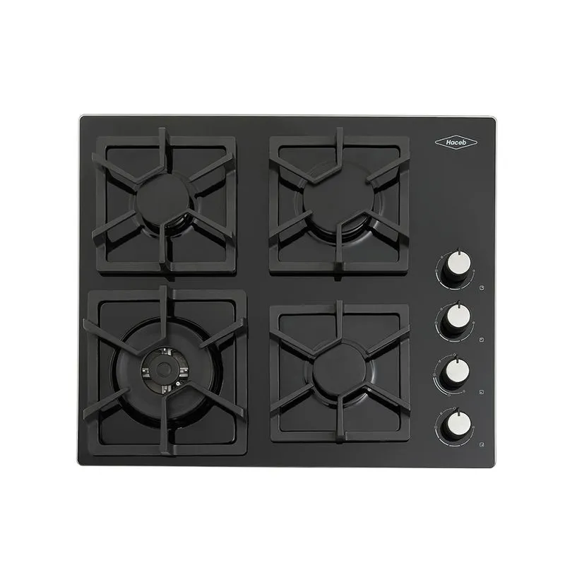 Cubierta de cristal con diseño de empotrar de 4 puestos y funciona a gas natural.