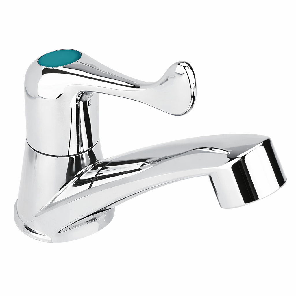 Llave mezcladora de plástico cromado para lavaplatos, cierre cerámico, manilla acrílica y cuello de cisne. Acabado brilante.