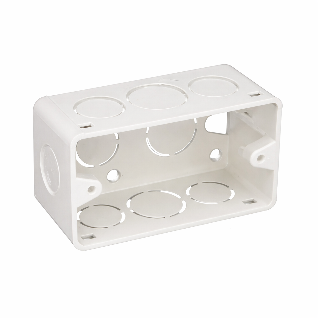 La Caja 2 × 4 PVC Pavco es una caja plástica eléctrica de PVC diseñada para instalaciones eléctricas, utilizada como punto de unión y protección de conexiones y contactos eléctricos. Su función principal es proteger los tomacorrientes, interruptores o conexiones eléctricas y permitir el acople de tuberías o canaletas de cableado en sistemas de conducción eléctrica.