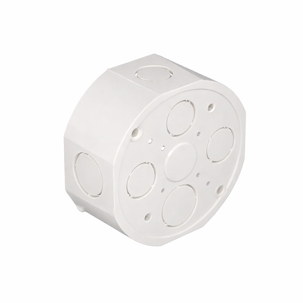 La Caja Octogonal PVC es una caja de empalme y distribución eléctrica fabricada en PVC (material plástico no conductor) con forma octogonal (8 lados). Se utiliza en instalaciones eléctricas para proteger y organizar las conexiones de cables, servir como punto de unión entre tuberías PVC (conduit) o como base para instalar portalámparas, sensores o accesorios eléctricos embutidos.